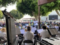 As an annual part of the LBHOA Summer Concert-in-the-Park series, the Peninsula Symphonic Winds played to a large audience at the Palos Verdes High School quad.