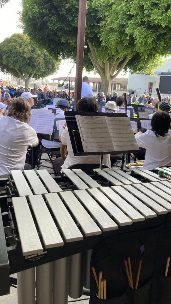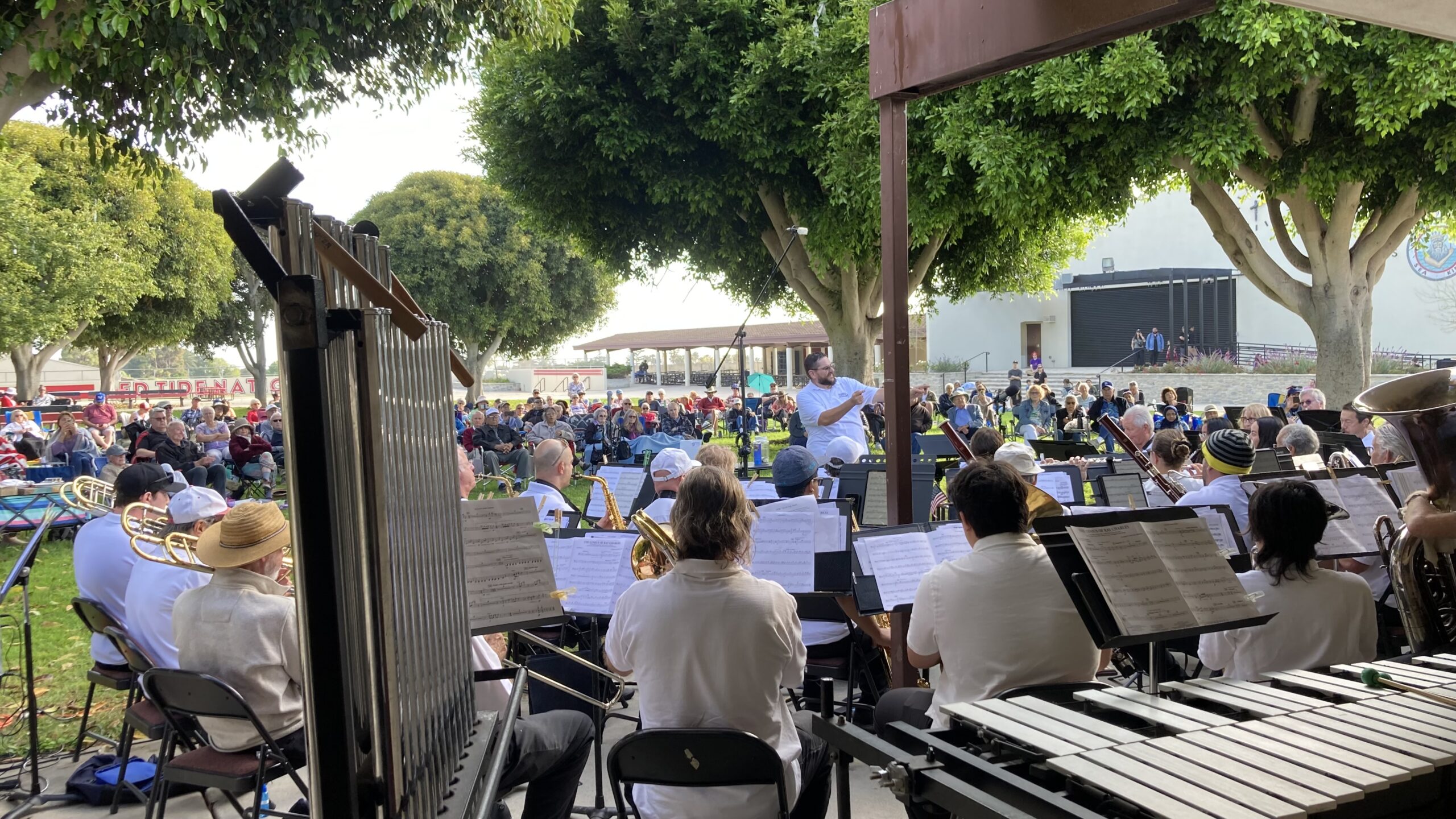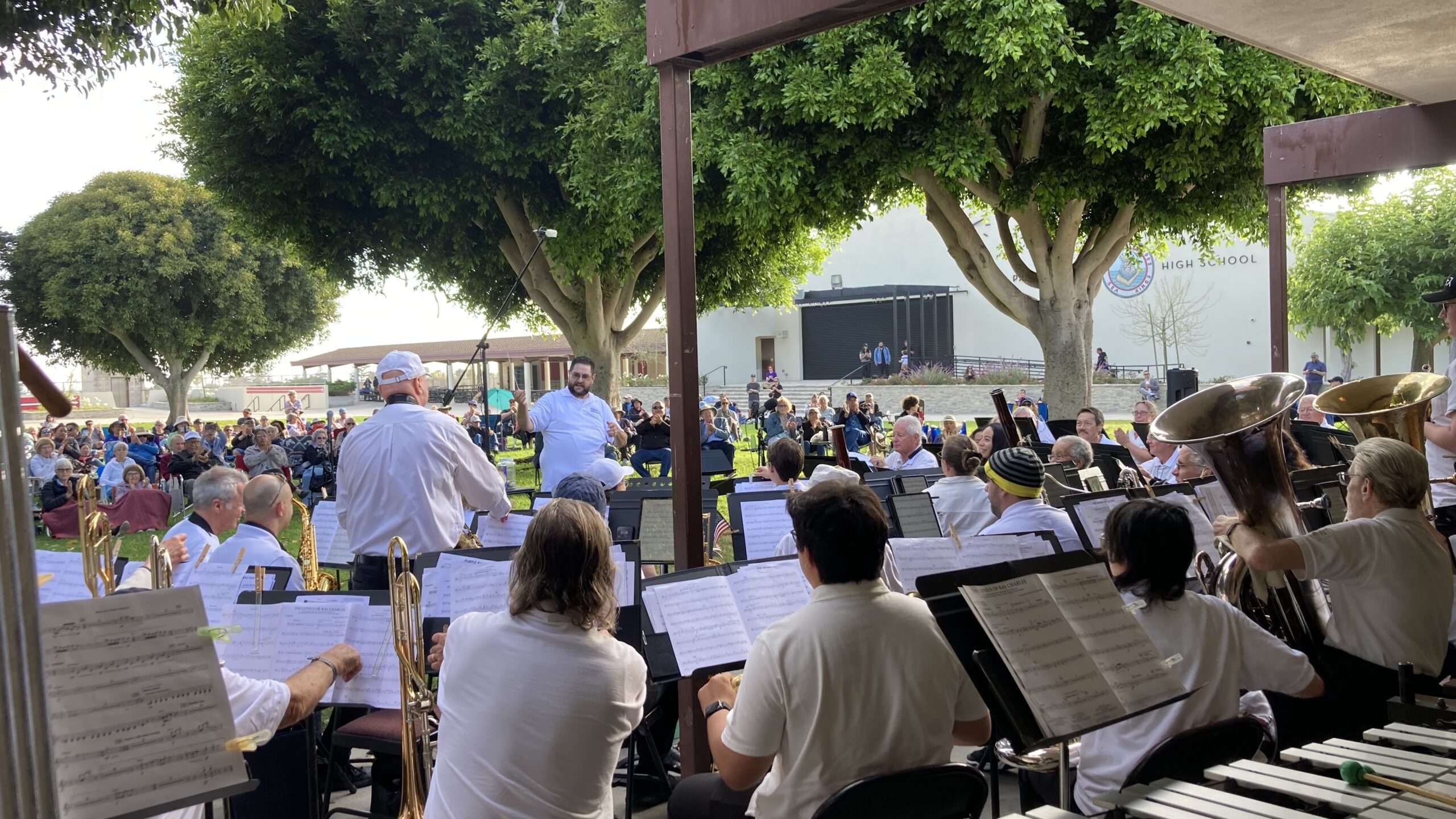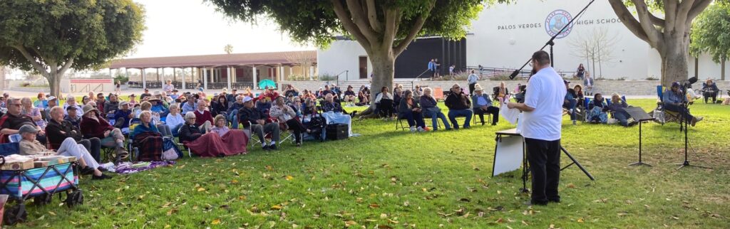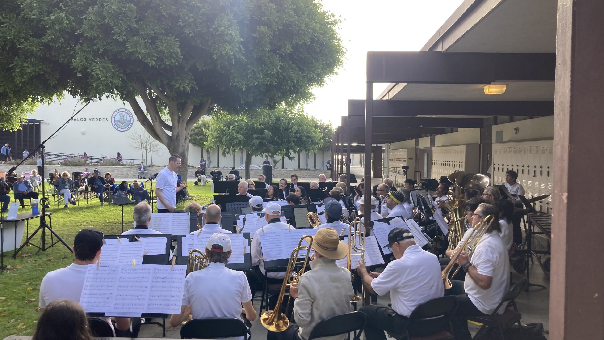 As an annual part of the LBHOA Summer Concert-in-the-Park series, the Peninsula Symphonic Winds played to a large audience at the Palos Verdes High School quad.