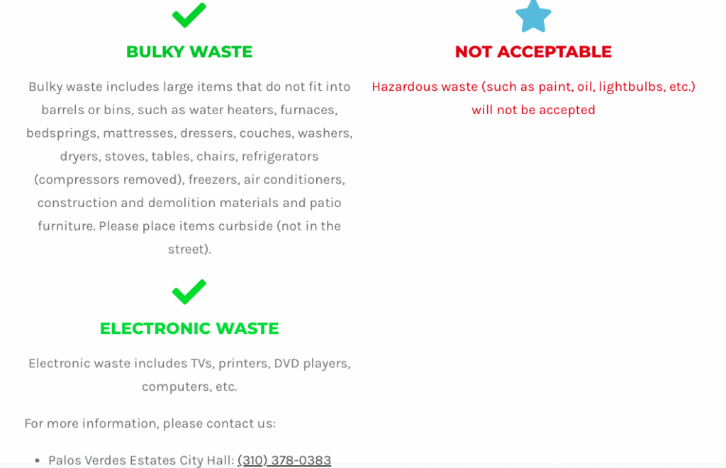 E-waste includes TV’s, radios, printers, DVD Players, computers, monitors, microwaves, etc. For additional information on e-waste and e-waste collection, please visit the E-waste webpage.